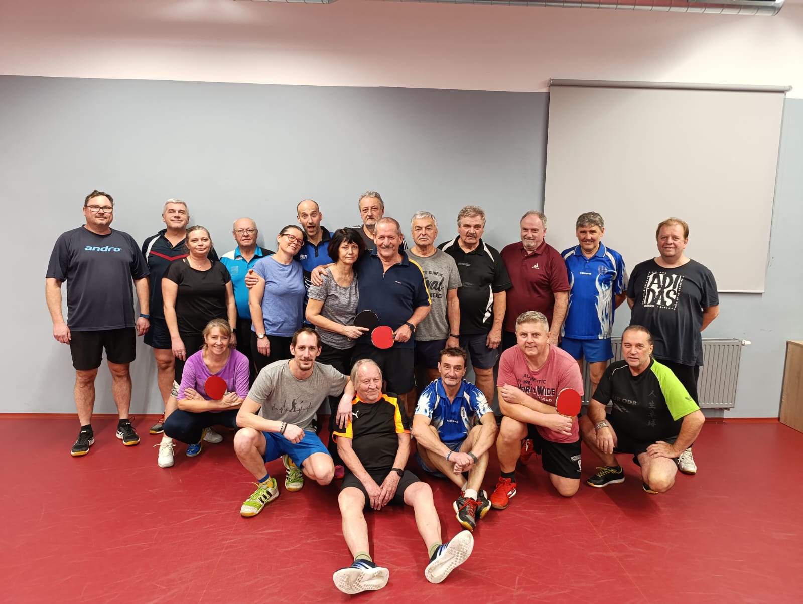 Tahle fotografie hovoří za vše. Již několik let každou neděli od 17:00 hodin se na herně stolního tenisu schází naši fanoušci a nezávodní hráči, kteří si chodí zahrát pinec a pěkně se pobavit. Jedná se o dlouholeté členy oddílu stolního tenisu, kteří v minulosti reprezentovali, nebo se jinak zapojili a podporovali náš oddíl stolního tenisu. Převážně na všech stolech se hrají zejména čtyřhry a v klubovně skoro nikdy nechybí nějaké dobroty a drobné občerstvení, které pokaždé někdo přinese. Slaví se svátky a narozeniny a vždy panuje dobrá nálada!!Šuty